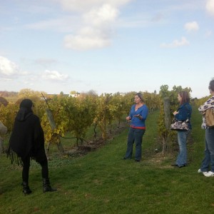 Experiencing Chateau Chantal: From top to bottom – Marie Chantal Dalese teaching us about the history of the winery; Learning about the winemaking operation; The spectaular view from the tasting room balcony.